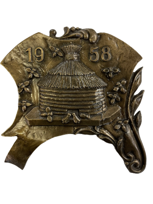 Bas-relief in patinated and varnished bronze with the emblem of the town of Grand'Combe-Châteleu (27 x 27 cm).
