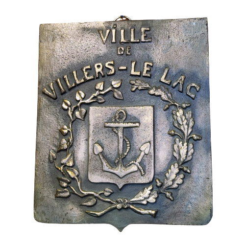 Other foundry items Bas-reliefs and Escutcheons Bas-relief emblem of Villers-le-Lac Ref : Bas-relief emblème de Villers-le-Lac Bas-relief in patinated and varnished bronze with the emblem of the town of Villers-le-Lac (19 x 16 cm). Specify your request Add to cart Description