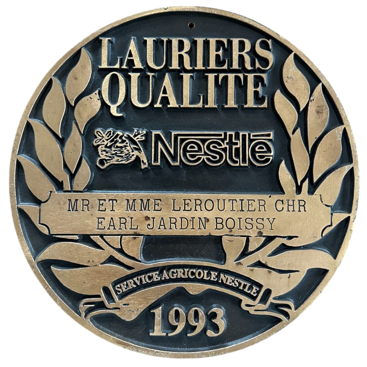 Patinated and varnished trophy (diameter 17 cm).