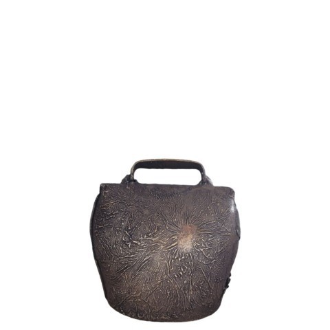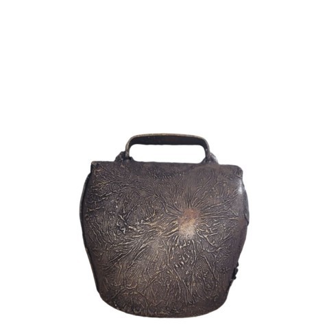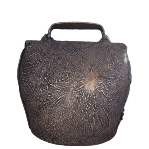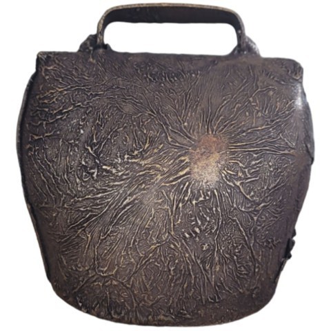 Aged steel bell with black leather collar.